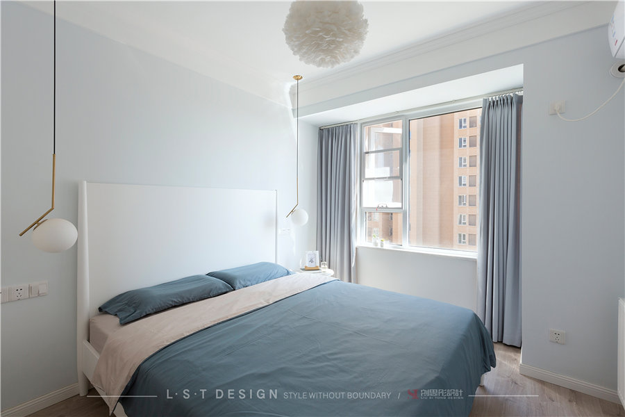▲主卧的软装搭配上也跟着整体的蓝粉清新色调走,床单选择的是zara home,舒适感极强.